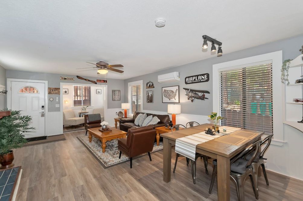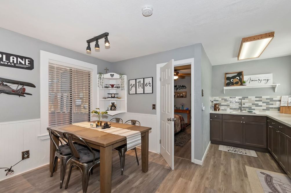 Escape to Babbs Getaway in Big Bear, California, where mountain charm meets modern comfort. This cozy retreat features a welcoming living space with a warm fireplace, perfect for unwinding after a day of adventure. The hardwood floors add a touch of elegance, while the smart TV and high-speed Wi-Fi keep you connected and entertained.