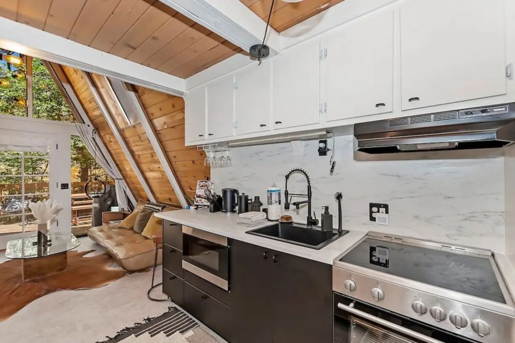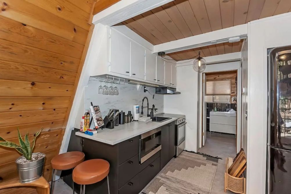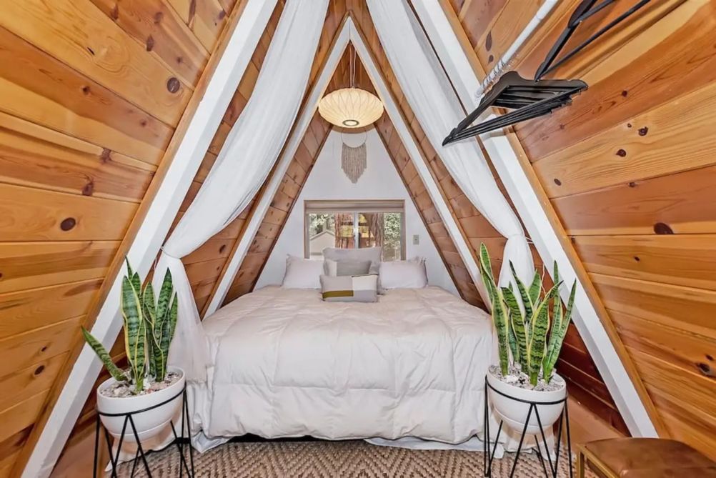 Nestled in the scenic beauty of Big Bear, California, the Acute A-frame Cabin offers a unique retreat for those seeking a blend of rustic charm and modern comfort. This distinctive cabin features an iconic A-frame architecture that stands out amidst the serene mountain backdrop. Inside, guests will find two cozy bedrooms, each furnished with a plush queen bed, ensuring restful nights after days of adventure.