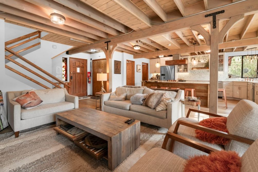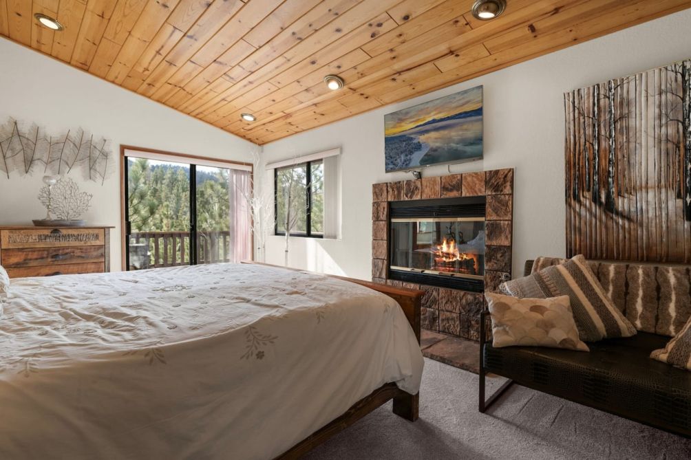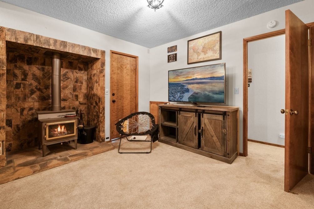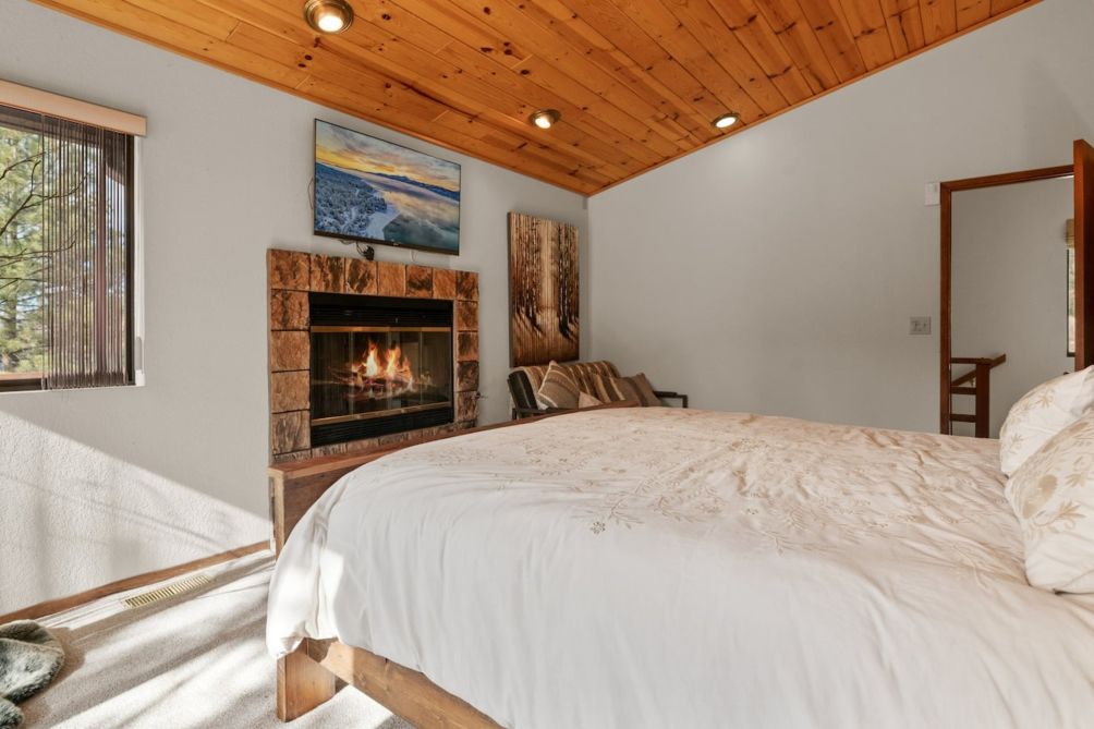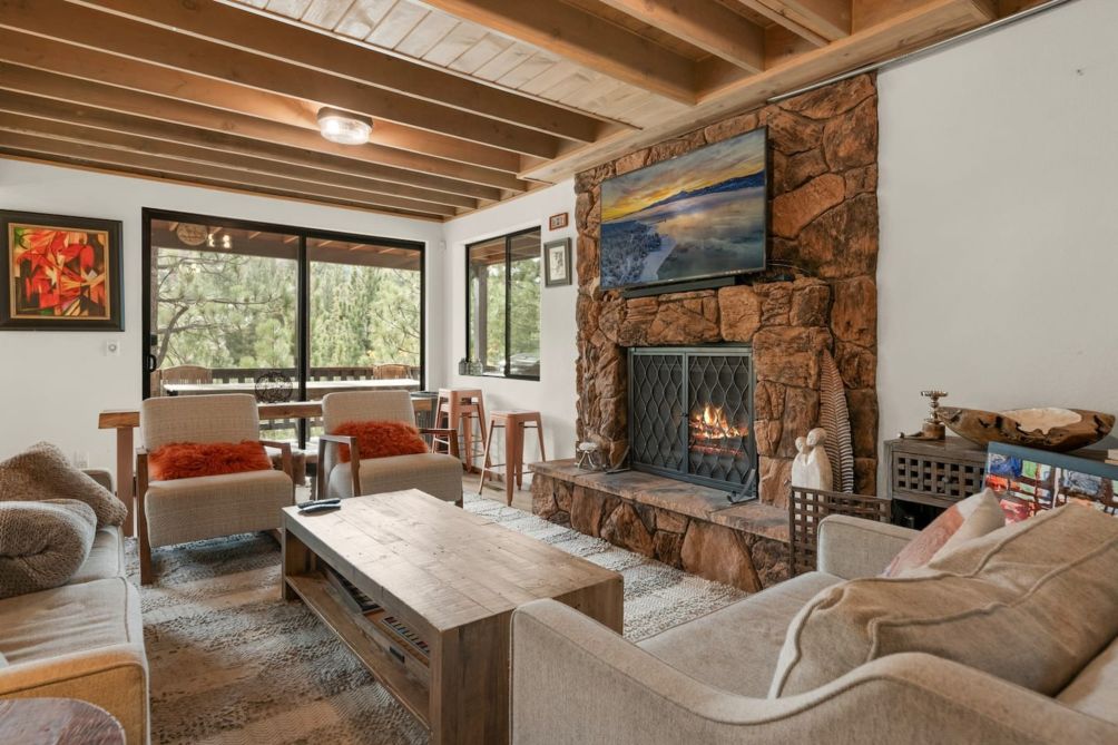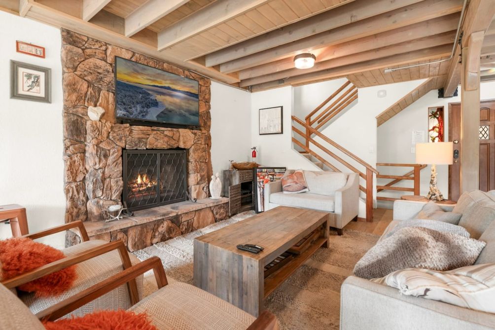 Escape to this charming two-story home in beautiful Big Bear Lake, CA. The spacious living room offers a warm and inviting atmosphere, featuring a cozy fireplace, a smart TV for entertainment, and plenty of comfortable seating for family and friends. The equipped kitchen provides everything you need to prepare delicious meals, making it perfect for home-cooked gatherings.