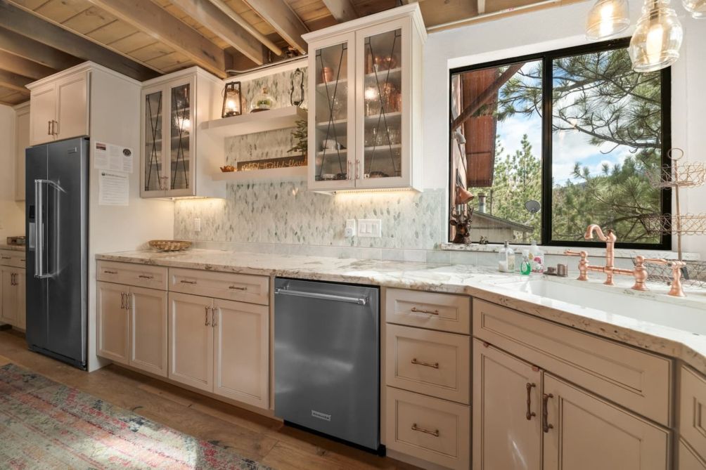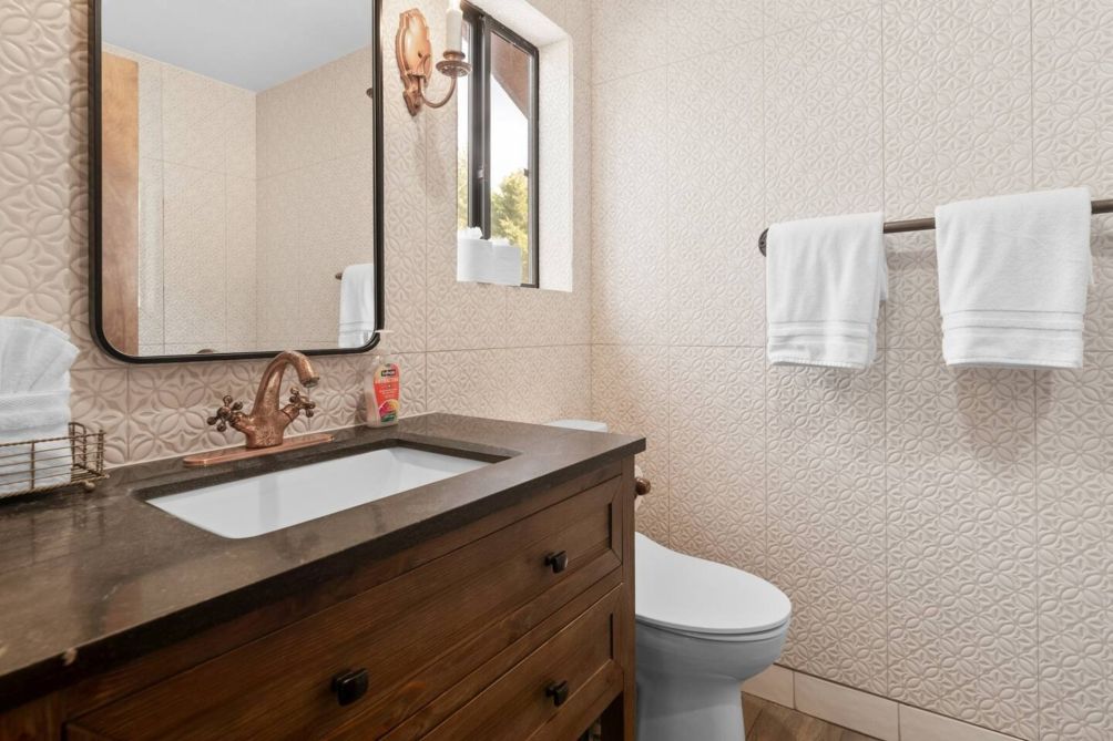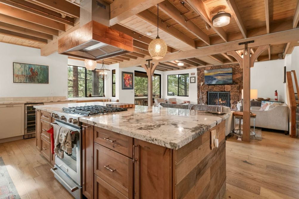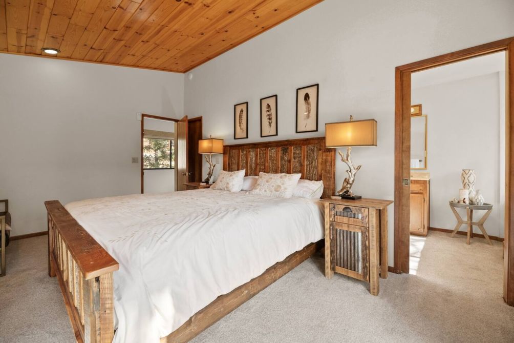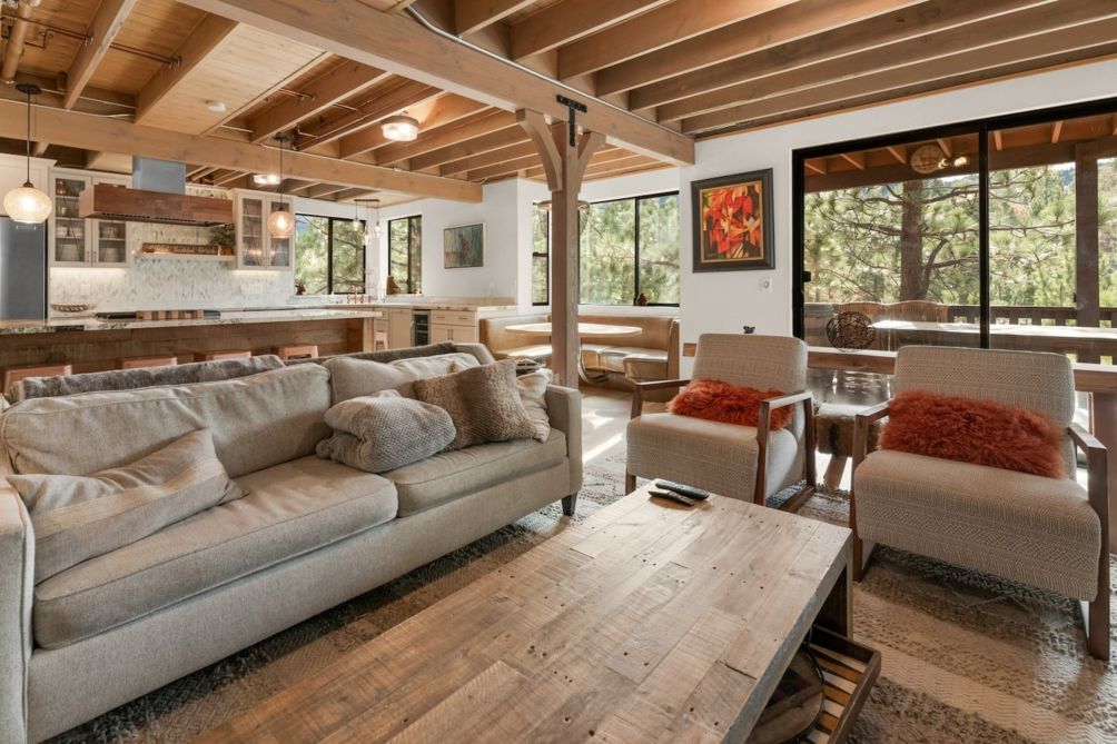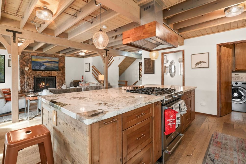 Escape to this charming two-story home in beautiful Big Bear Lake, CA. The spacious living room offers a warm and inviting atmosphere, featuring a cozy fireplace, a smart TV for entertainment, and plenty of comfortable seating for family and friends. The equipped kitchen provides everything you need to prepare delicious meals, making it perfect for home-cooked gatherings.