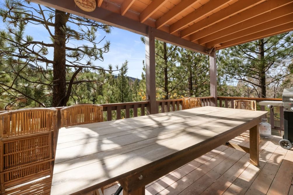 Step outside onto the furnished balcony, where you can relax and take in the fresh mountain air. The BBQ area is ideal for grilling and dining al fresco while enjoying the serene surroundings. Whether you're unwinding indoors or enjoying the outdoor spaces, this home is the perfect getaway for a relaxing stay in Big Bear.