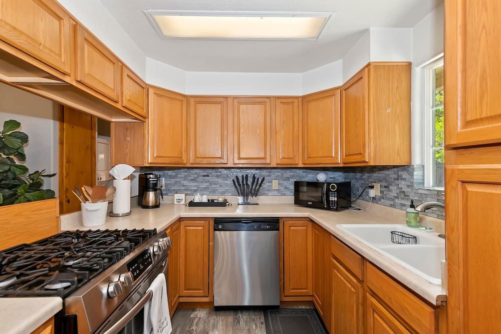 The kitchen is fully stocked with all the essentials, including appliances, cookware, dishware, flatware, and wine glasses. Brew a fresh cup of coffee in the morning and step onto the back deck to take in the crisp mountain air and soothing sounds of nature.