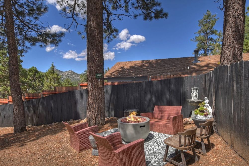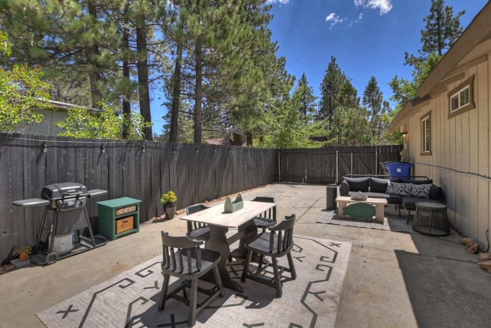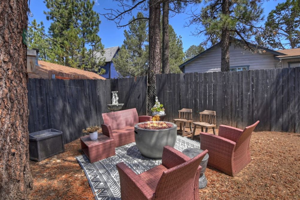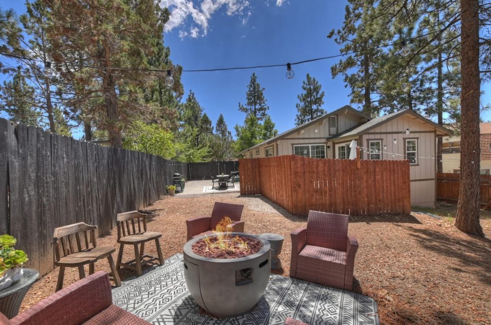 Outside, the spacious backyard invites you to unwind and enjoy the stunning surroundings. Soak in the hot tub under the starry sky, gather around the fire pit with string lights for a cozy evening, or relax in the outdoor seating area and bask in the sun. In the winter, the property offers on-site snow play for kids, while in the warmer months, it transforms into the perfect spot for outdoor games and relaxation.