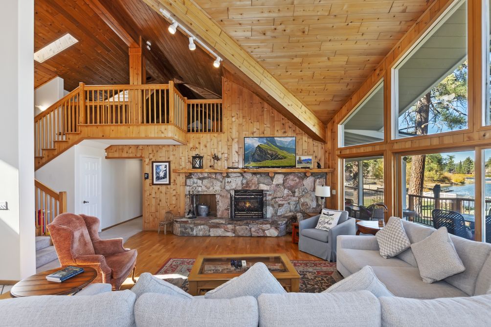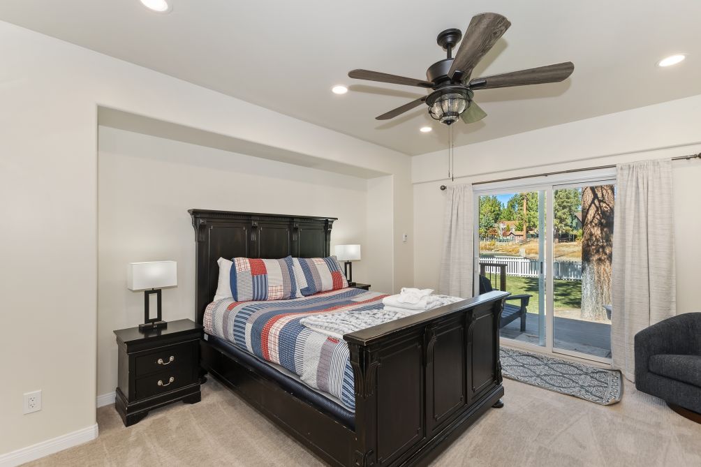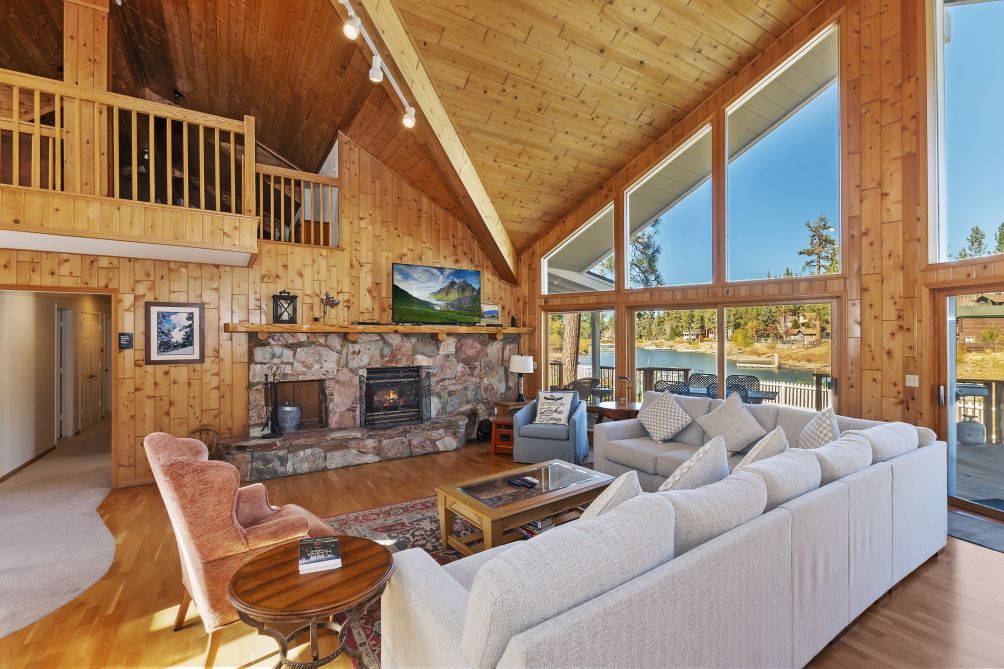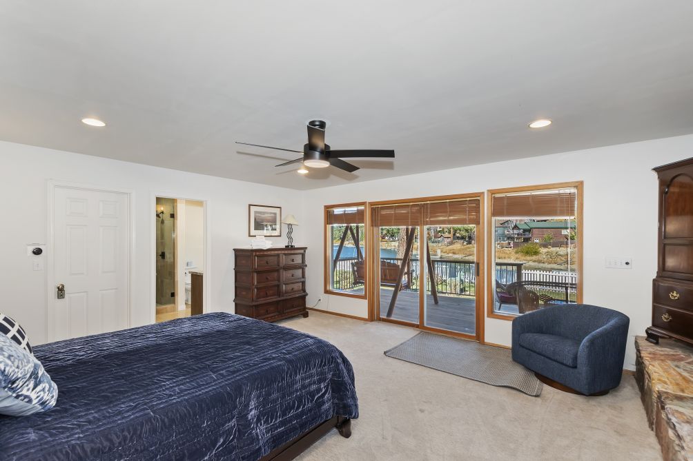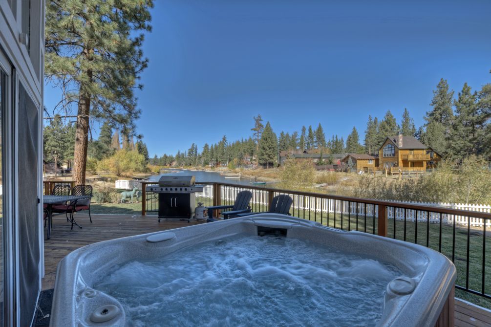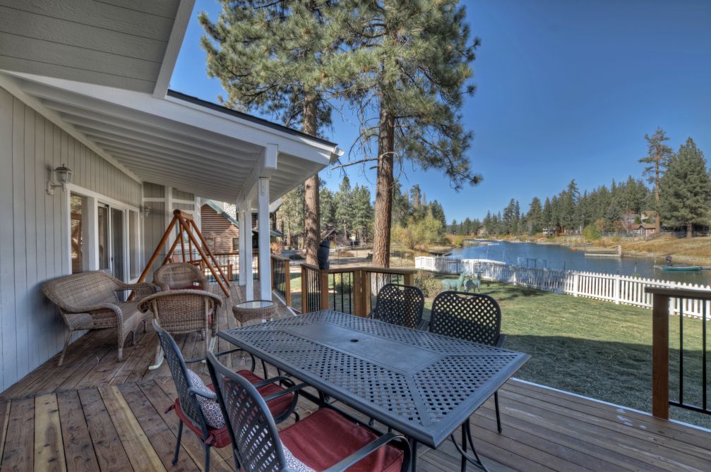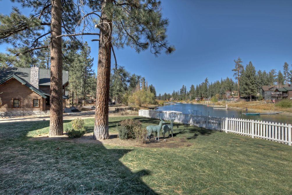 Welcome to Lakefront Estate. This expansive home has four bedrooms downstairs, plus a huge upstairs loft/5th bedroom and game room, four bathrooms, sleeping 16 guests, two large redwood decks (front and back), Wi-Fi, and over ½ acre of beautifully maintained landscaping. The home features an expansive, sun-filled great room with a wood-burning fireplace and a 2-story wall of windows. This home is one of the very few homes in Big Bear Lake with a secure gated backyard for families and especially young children. The Mallard Bay area is centrally located only a few minutes to the village and Alpine Sledding and ten minutes to Snow Summit. With easy access to the lake, the village, ski slopes, and hiking trails, this lakefront estate is perfectly located for all your adventures in Big Bear Lake. The large fenced backyard is perfect for winter snow play and situated to watch the amazing July 4th fireworks in the summer.