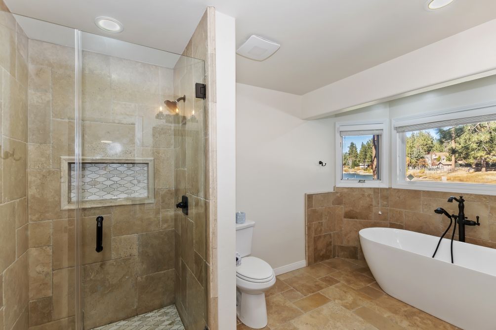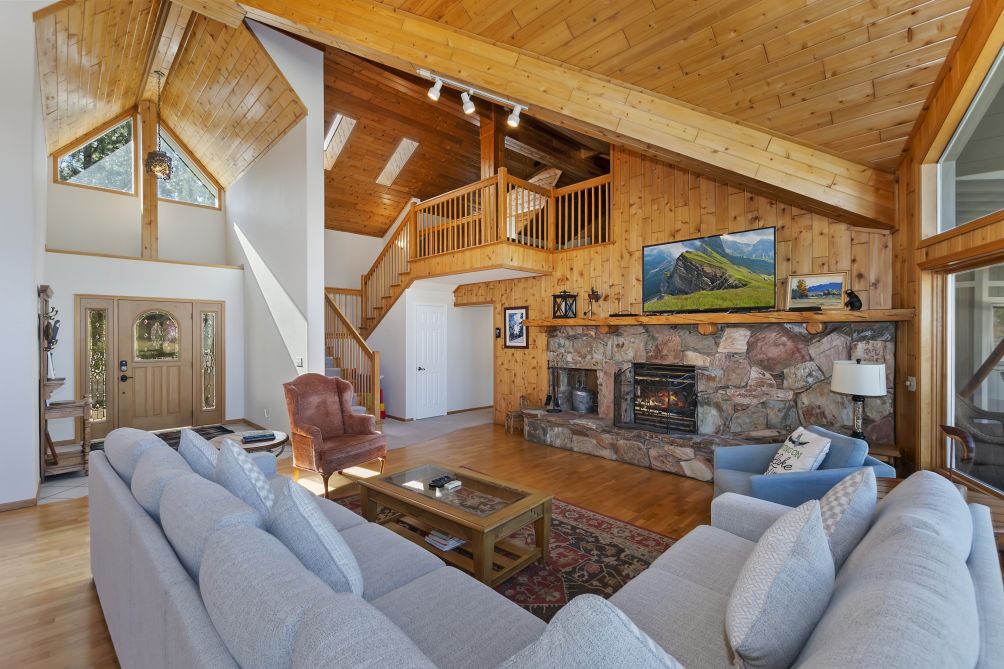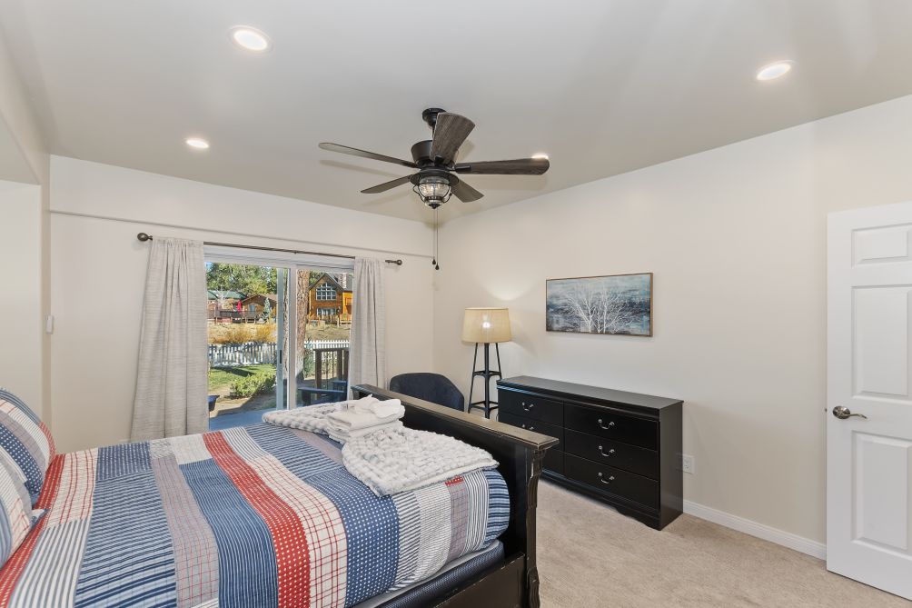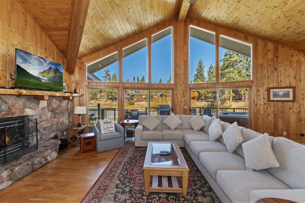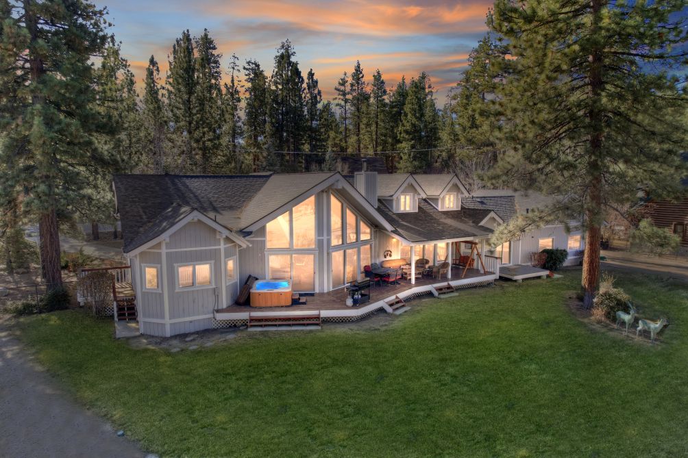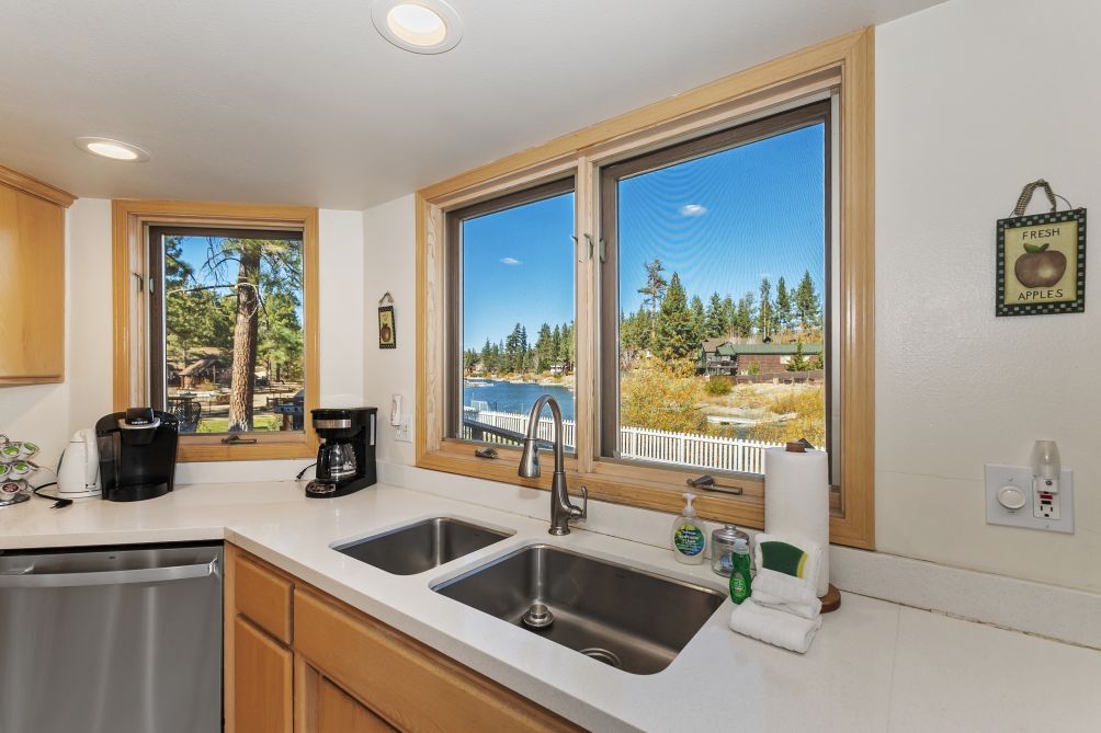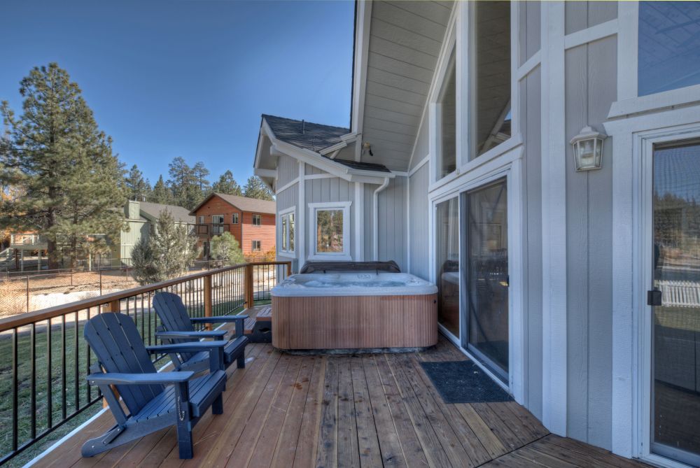 Welcome to Lakefront Estate. This expansive home has four bedrooms downstairs, plus a huge upstairs loft/5th bedroom and game room, four bathrooms, sleeping 16 guests, two large redwood decks (front and back), Wi-Fi, and over ½ acre of beautifully maintained landscaping. The home features an expansive, sun-filled great room with a wood-burning fireplace and a 2-story wall of windows. This home is one of the very few homes in Big Bear Lake with a secure gated backyard for families and especially young children. The Mallard Bay area is centrally located only a few minutes to the village and Alpine Sledding and ten minutes to Snow Summit. With easy access to the lake, the village, ski slopes, and hiking trails, this lakefront estate is perfectly located for all your adventures in Big Bear Lake. The large fenced backyard is perfect for winter snow play and situated to watch the amazing July 4th fireworks in the summer.