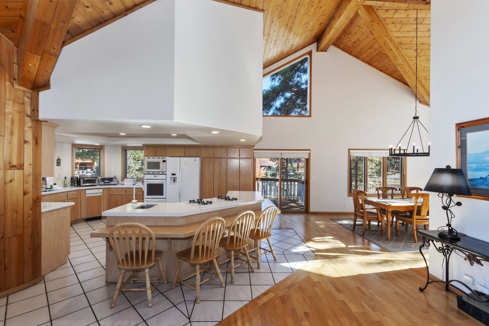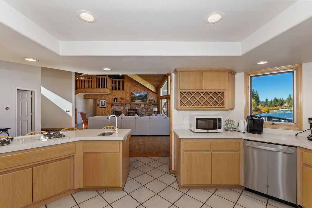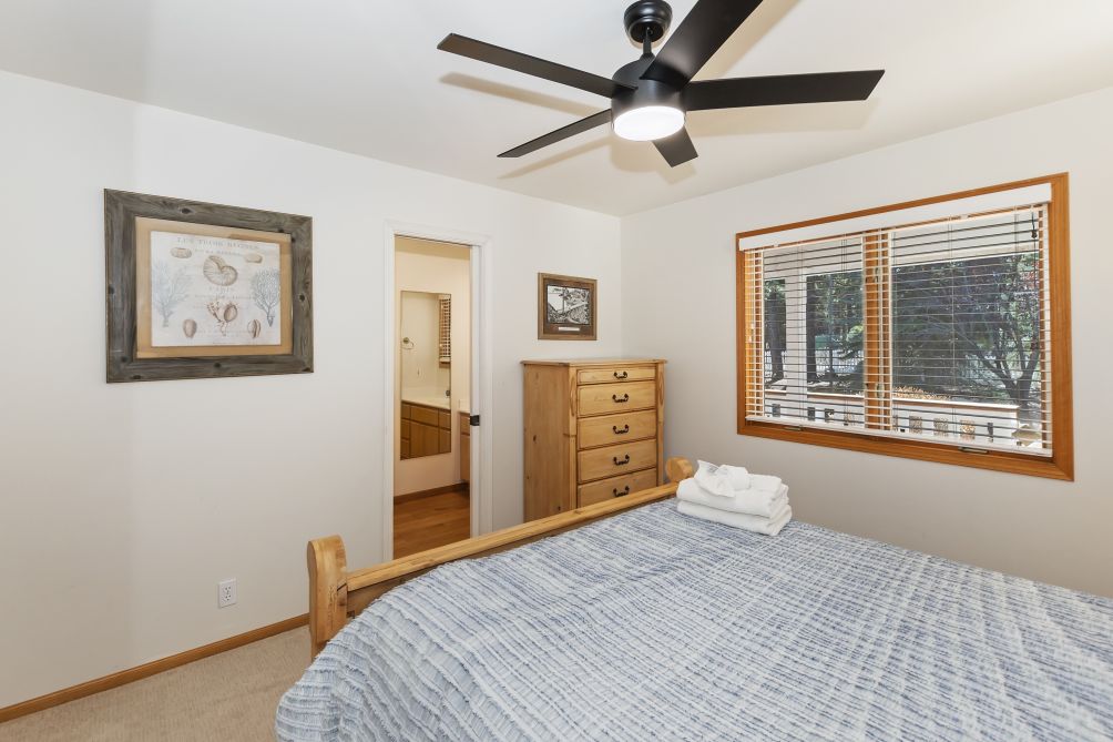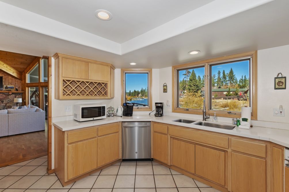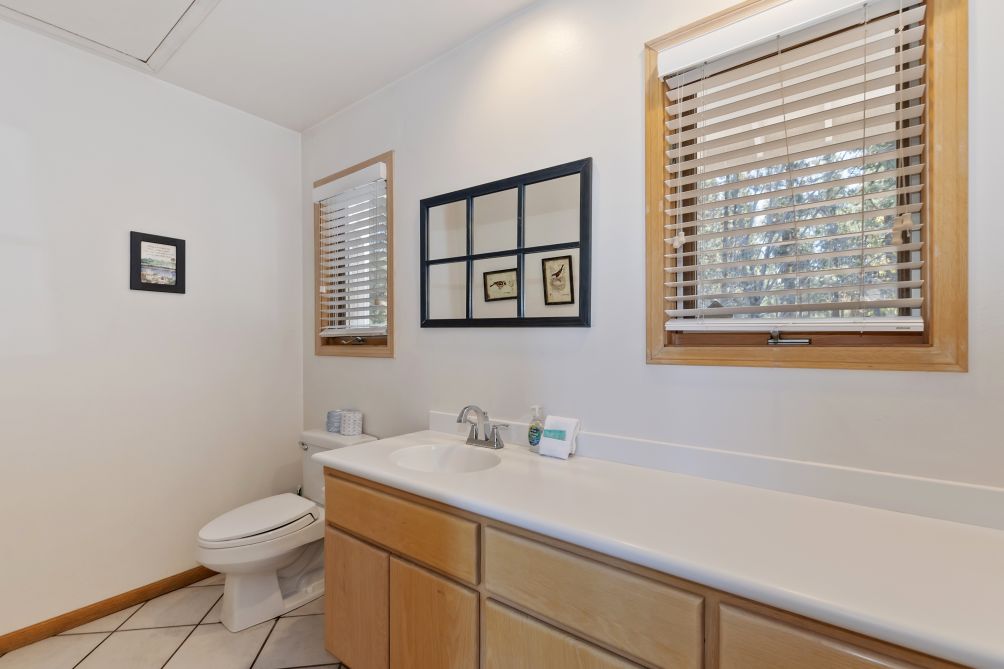 FIRST FLOOR: The first floor offers an expansive open floor plan that brings the family together while cooking, dining, or relaxing. Walk-in through the front door and you will say "WOW' as your eyes peer through the two-story wall of windows and focus on the serenity of the lake. The living room is equipped with an HDTV with satellite service and all the internet-based services such as Netflix and HULU. The kitchen is stocked with the tools of the trade and has an eat-in breakfast bar with its own sink. For the cook, there is a four-burner gas grill, two large microwaves, and an oven. The rear deck overlooking the lake has a 5-burner propane barbecue grill, a large dining table, a swing for two, and comfortable sofa/side chair seating for five. The beautiful redwood front deck is perfect for quiet conversation and wine tasting overlooking the park-like landscaping. Dine inside at the large table surrounded by tall windows highlighting the mature pine trees and blue sky. This is nature at its best! The master suite has a king-sized bed, (sleeps 2), an HDTV, a wood-burning fireplace, and a full remodeled bathroom with a shower and a large deep soaking tub. The other two large bedrooms share a bathroom between them (one room has a king bed (sleeps two) and the other with a queen bed (sleeps two). There is a new remodeled bedroom and bathroom with queen. Sleeping a total of 8 on the first floor.