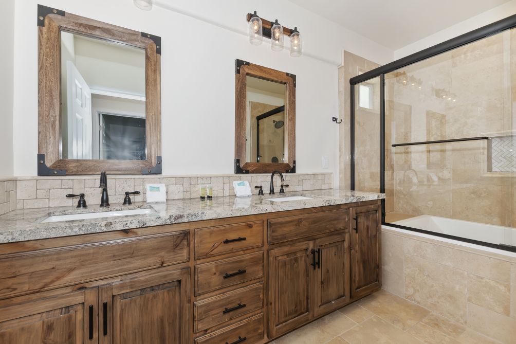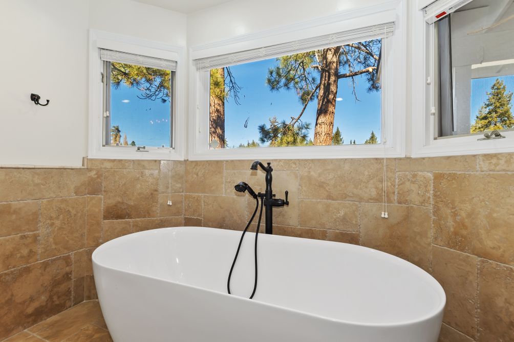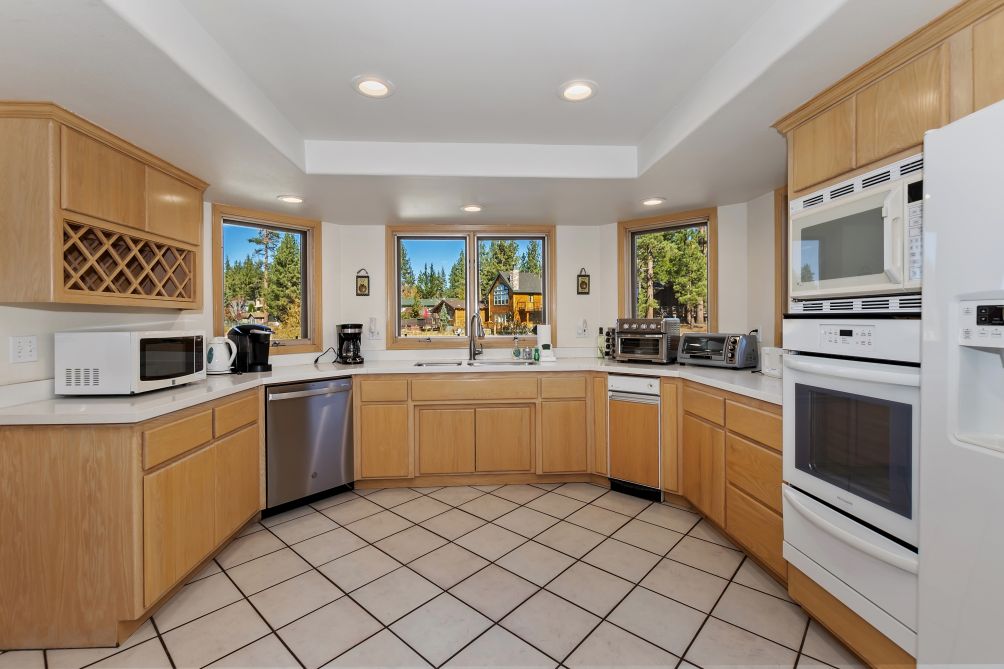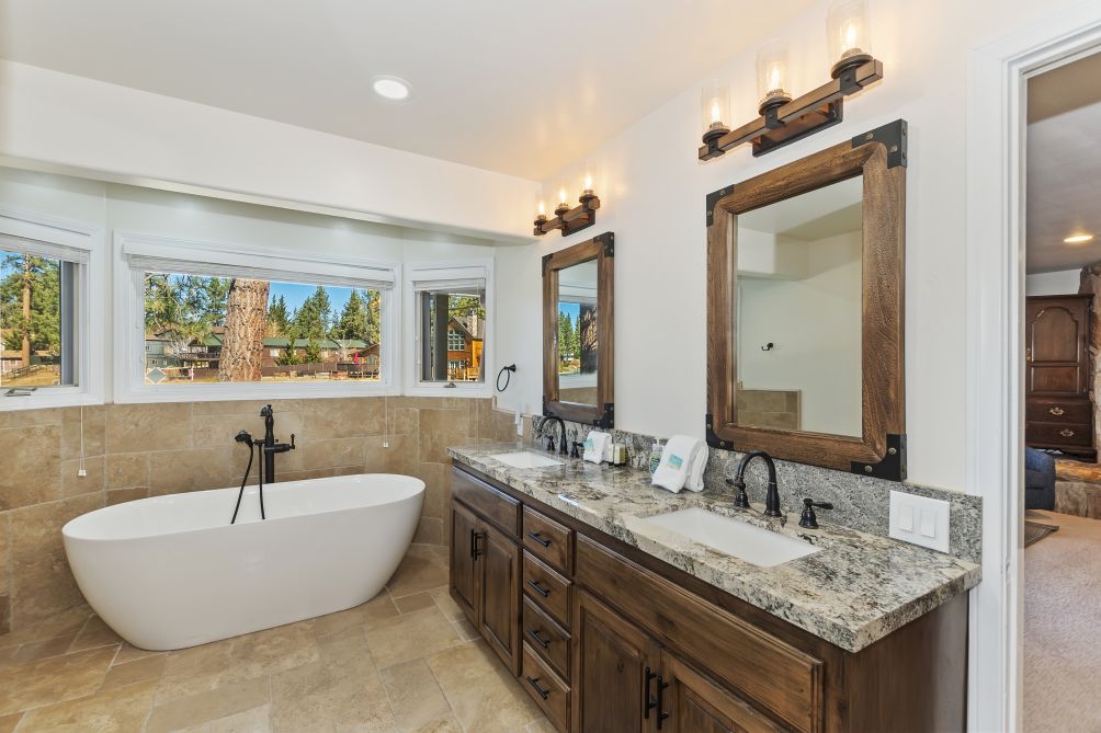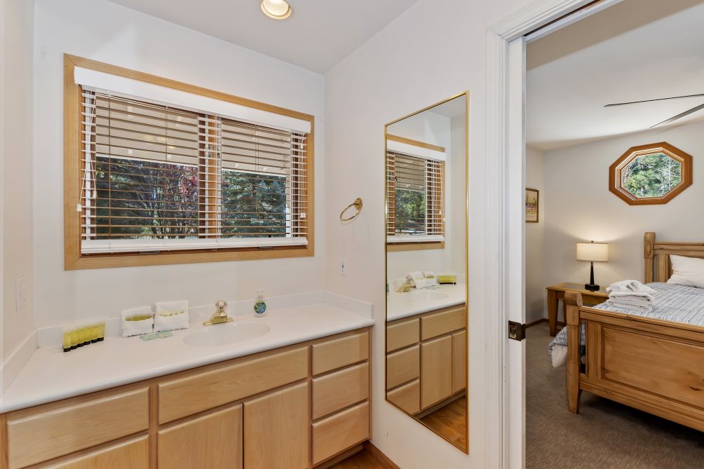 FIRST FLOOR: The first floor offers an expansive open floor plan that brings the family together while cooking, dining, or relaxing. Walk-in through the front door and you will say "WOW' as your eyes peer through the two-story wall of windows and focus on the serenity of the lake. The living room is equipped with an HDTV with satellite service and all the internet-based services such as Netflix and HULU. The kitchen is stocked with the tools of the trade and has an eat-in breakfast bar with its own sink. For the cook, there is a four-burner gas grill, two large microwaves, and an oven. The rear deck overlooking the lake has a 5-burner propane barbecue grill, a large dining table, a swing for two, and comfortable sofa/side chair seating for five. The beautiful redwood front deck is perfect for quiet conversation and wine tasting overlooking the park-like landscaping. Dine inside at the large table surrounded by tall windows highlighting the mature pine trees and blue sky. This is nature at its best! The master suite has a king-sized bed, (sleeps 2), an HDTV, a wood-burning fireplace, and a full remodeled bathroom with a shower and a large deep soaking tub. The other two large bedrooms share a bathroom between them (one room has a king bed (sleeps two) and the other with a queen bed (sleeps two). There is a new remodeled bedroom and bathroom with queen. Sleeping a total of 8 on the first floor.