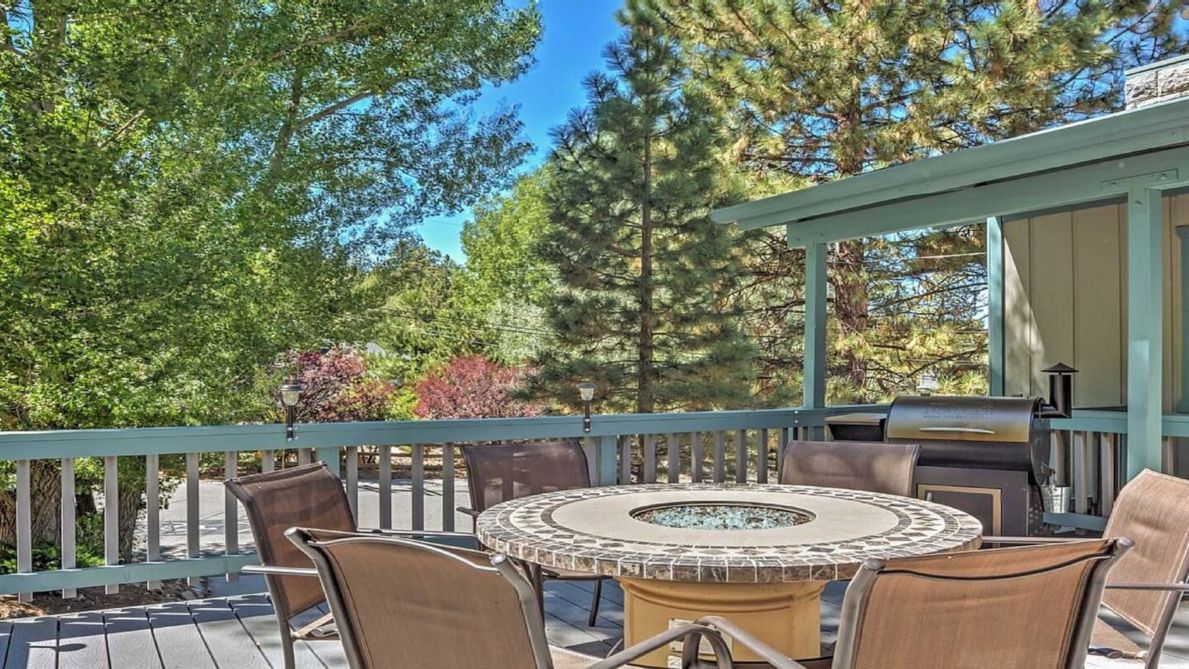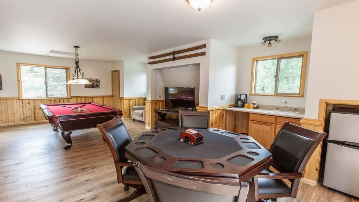 Look forward to spending your downtime relaxing outside on one of the house’s 2 private decks, where you can admire the property’s beautiful landscaping and observe incredible Bear Mountain ski slope views, which include full views of Geronimo run once the leaves drop from the trees in the winter! Stay entertained by utilizing the house`s terrific game room, featuring a pool table, poker/game table, and more. Soak your cares away in the private hot tub located on the upper deck. After whipping up some tasty barbeque on the house`s grill, gather with your loved ones around the gas fire pit table on the deck to enjoy a glass of wine or hot chocolate under the stars.