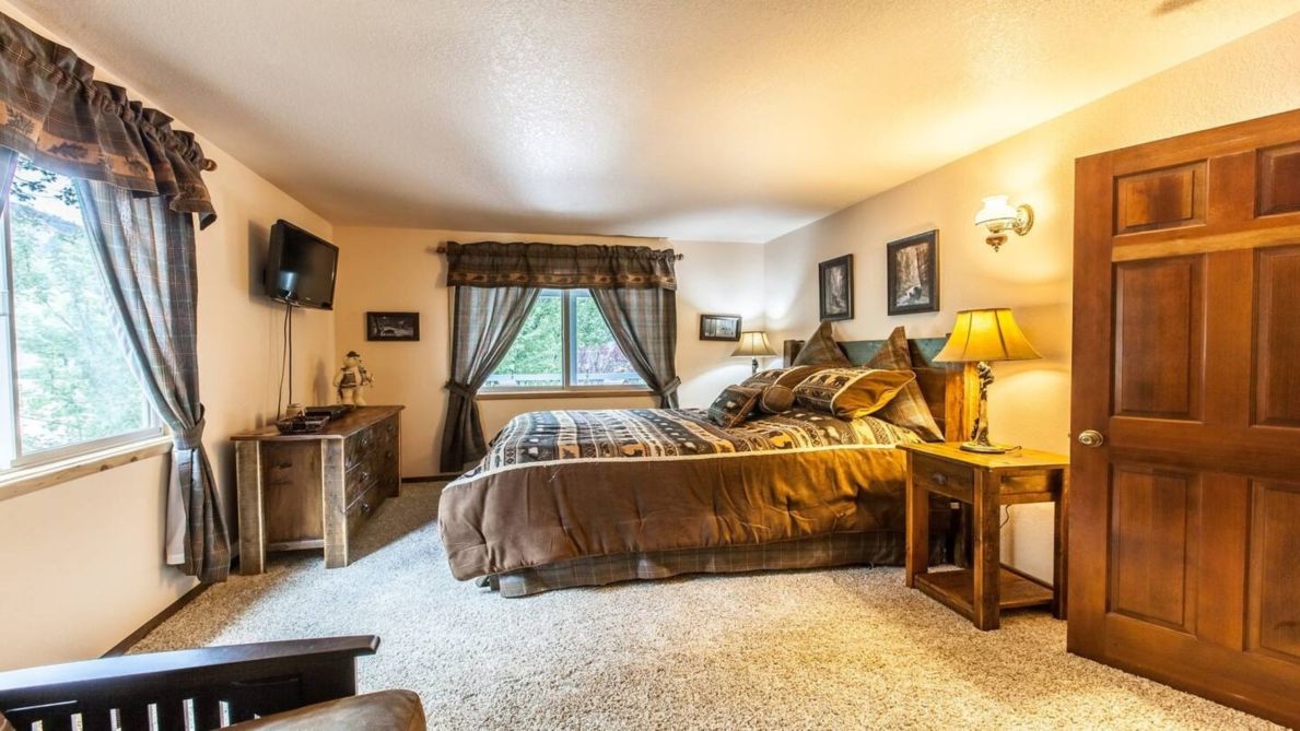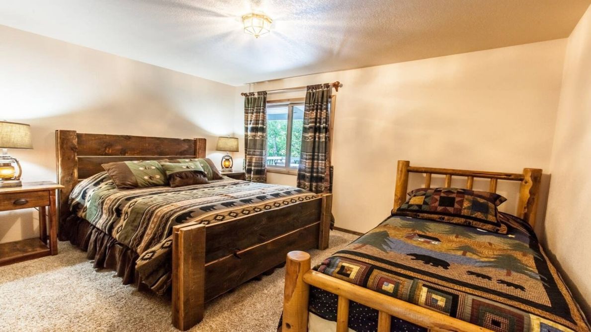 This 1,400-square foot custom home can comfortably sleep 7 guests throughout 3 bedrooms and 3 bathrooms. You’ll feel the stresses of everyday life simply melt away as soon as you first arrive and step into the home’s inviting interior, appointed with rustic decor, comfortable furnishings, dual pane windows and a variety of upgrades, as well as a game room over the garage.