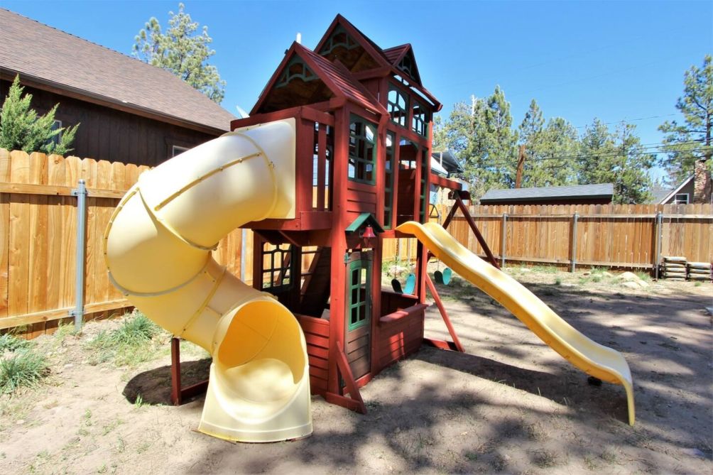Just behind the Living Room is a spacious Dining Room. Whether you are sharing a meal or getting competitive with some board games, there is plenty of space for the whole family here. The large kitchen features newer appliances and has everything you need for cooking and eating during your stay. Step out the large slider to a spacious deck with seating and a charcoal BBQ. When it comes time to relax, you will love the private spa! The kids will love the play structure in the back yard!