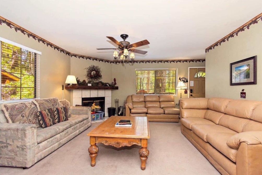 La Cerena Chalet is an affordable 3 bedroom, 2 bath cabin in lower Moonridge that is just a mile from both Bear Mountain and Snow Summit Ski Resorts and SO close to the Golf Course and nearby restaurants. Catch the shuttle bus to the slopes just across Moonridge Rd.