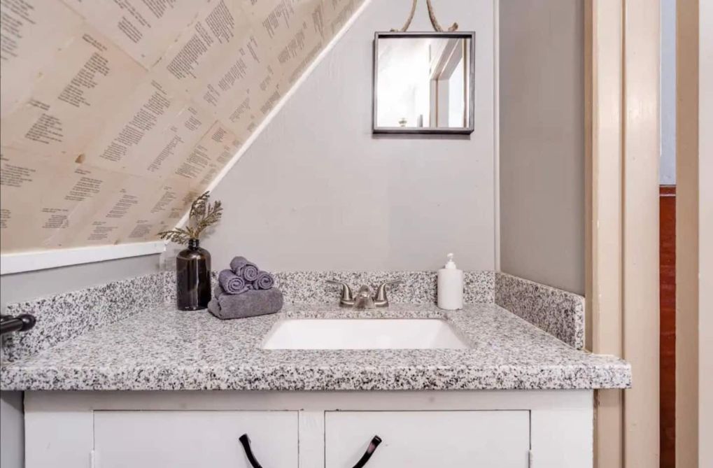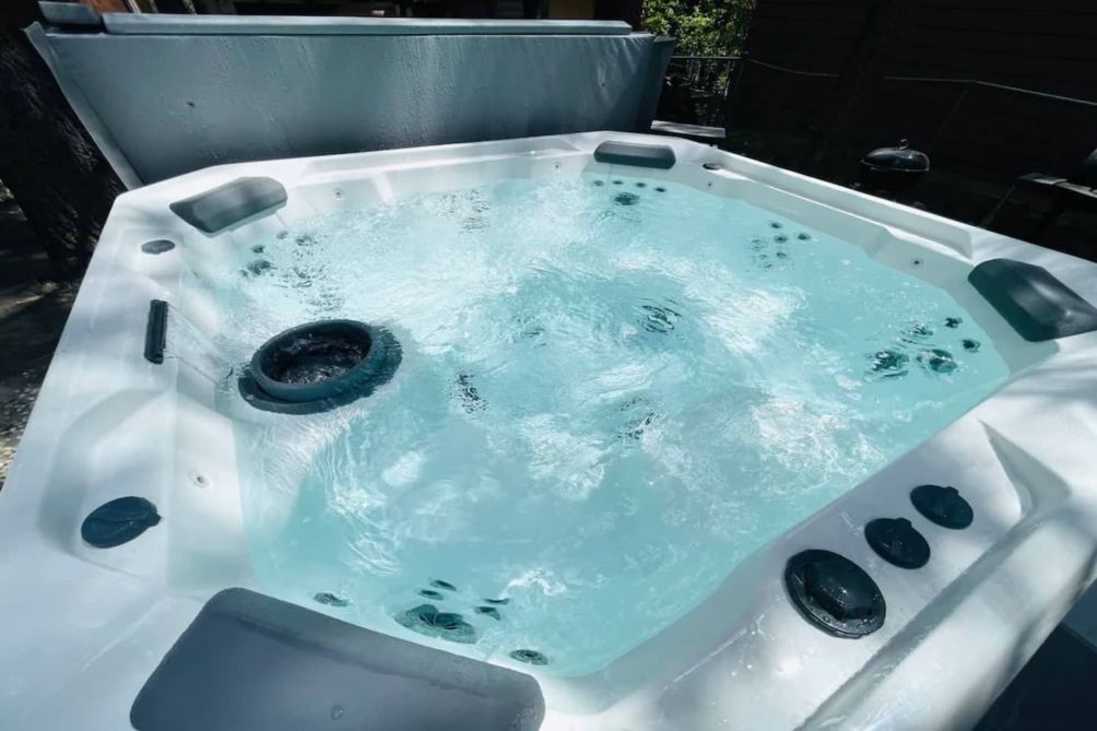 Features and amenities include a private spa, wood fireplace, deck, porch, charcoal grill, internet, fully equipped kitchen, all linens/towels and easy parking in this adorable cabin.